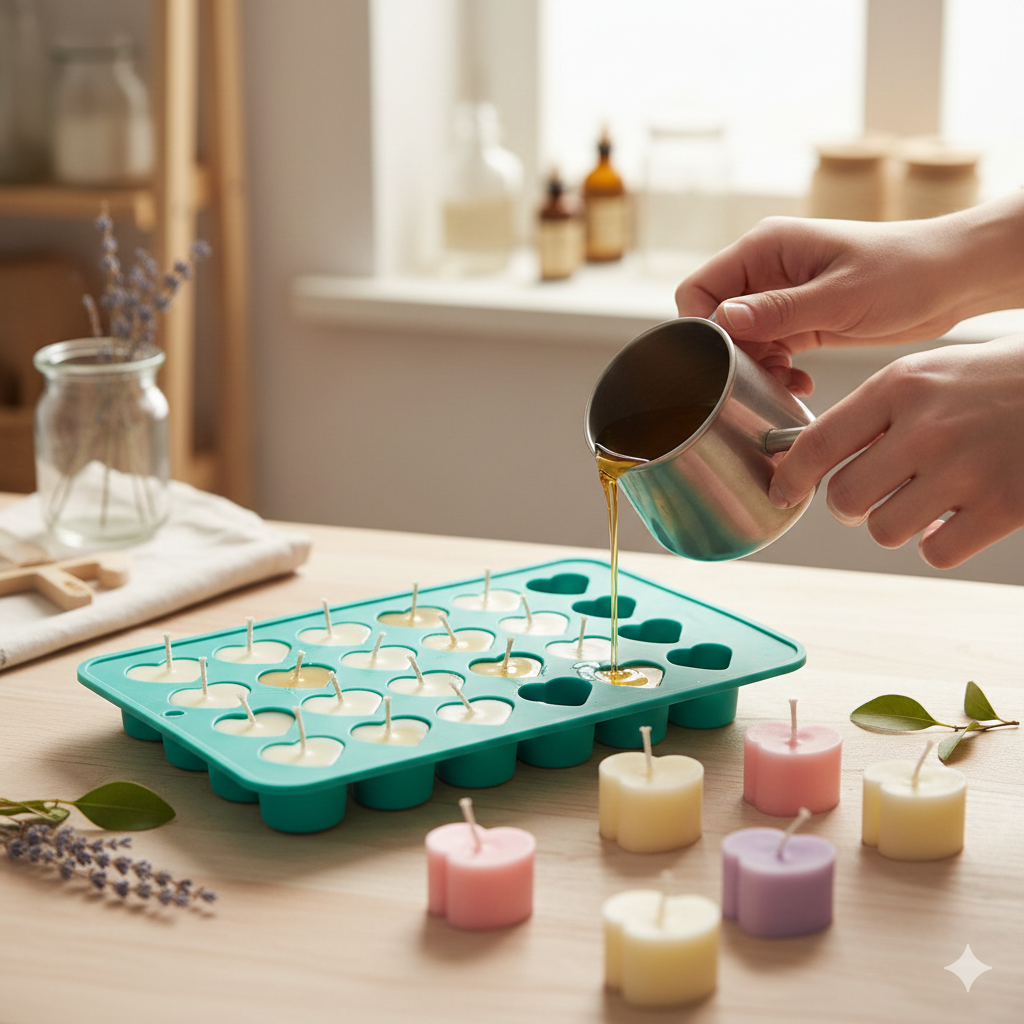 55-Cavity Mini Heart Silicone Mold for Candle & Soap Making – Flexible, Non-Stick Heat-Resistant Tray for DIY Homemade Crafts