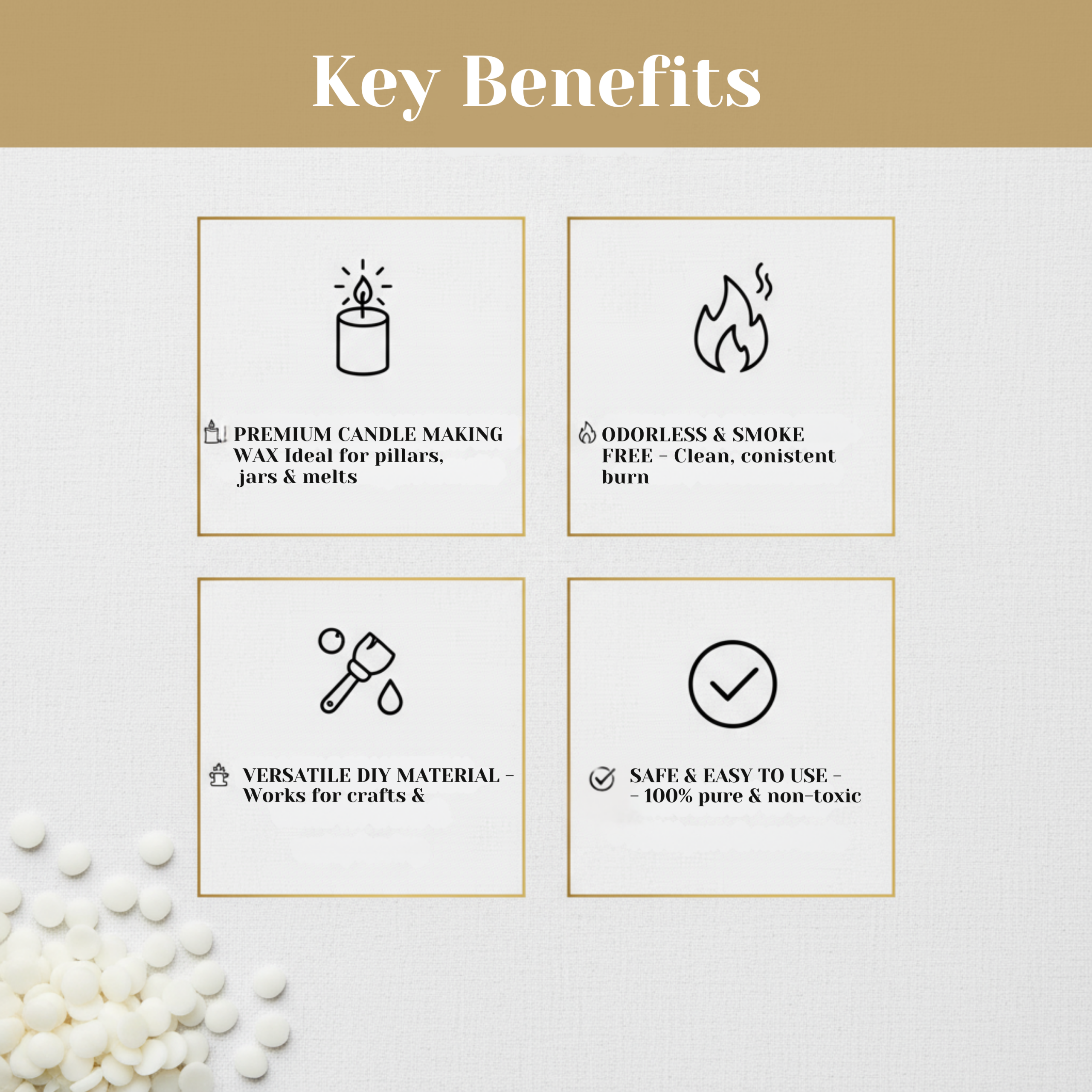 شمع بارافين مصري لصناعة الشموع – كتل بيضاء مكررة بالكامل، عديم الرائحة، سهل الذوبان، ويحترق نظيفًا. مثالي للشموع المصنوعة يدويًا وقطع الشمع الذائبة، ومناسب لصناعة جميع أنواع الشموع وقطع الشمع الإبداعية والمشاريع الحرفية الأخرى.