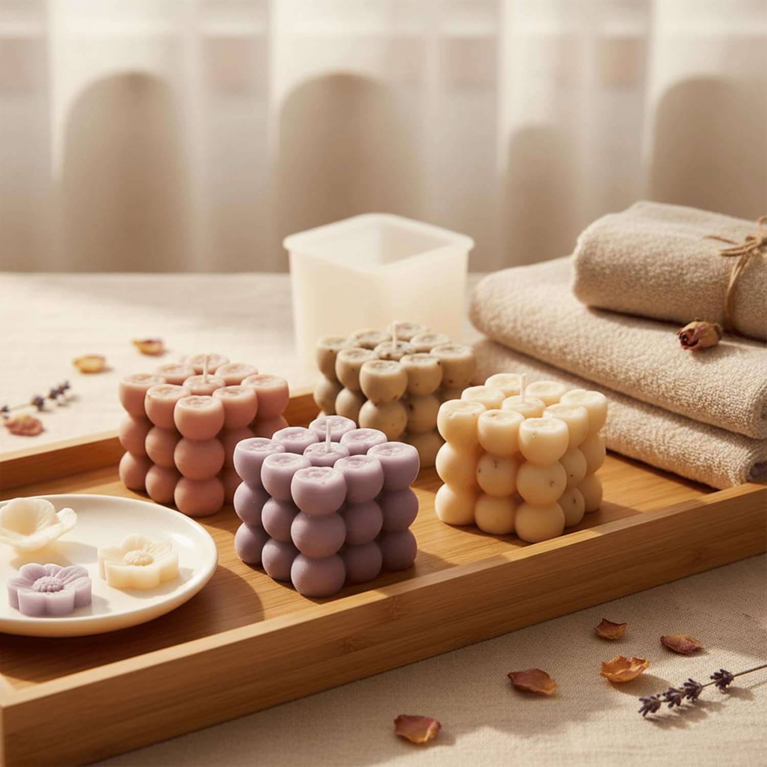 Flower Silicone Candle Mold for DIY Soap & Wax Making – 3D Reusable Mold for Handmade Floral Candles, Eid Gifts & Home Décor – 165g Capacity – Heat-Resistant, 7 * 4 cm