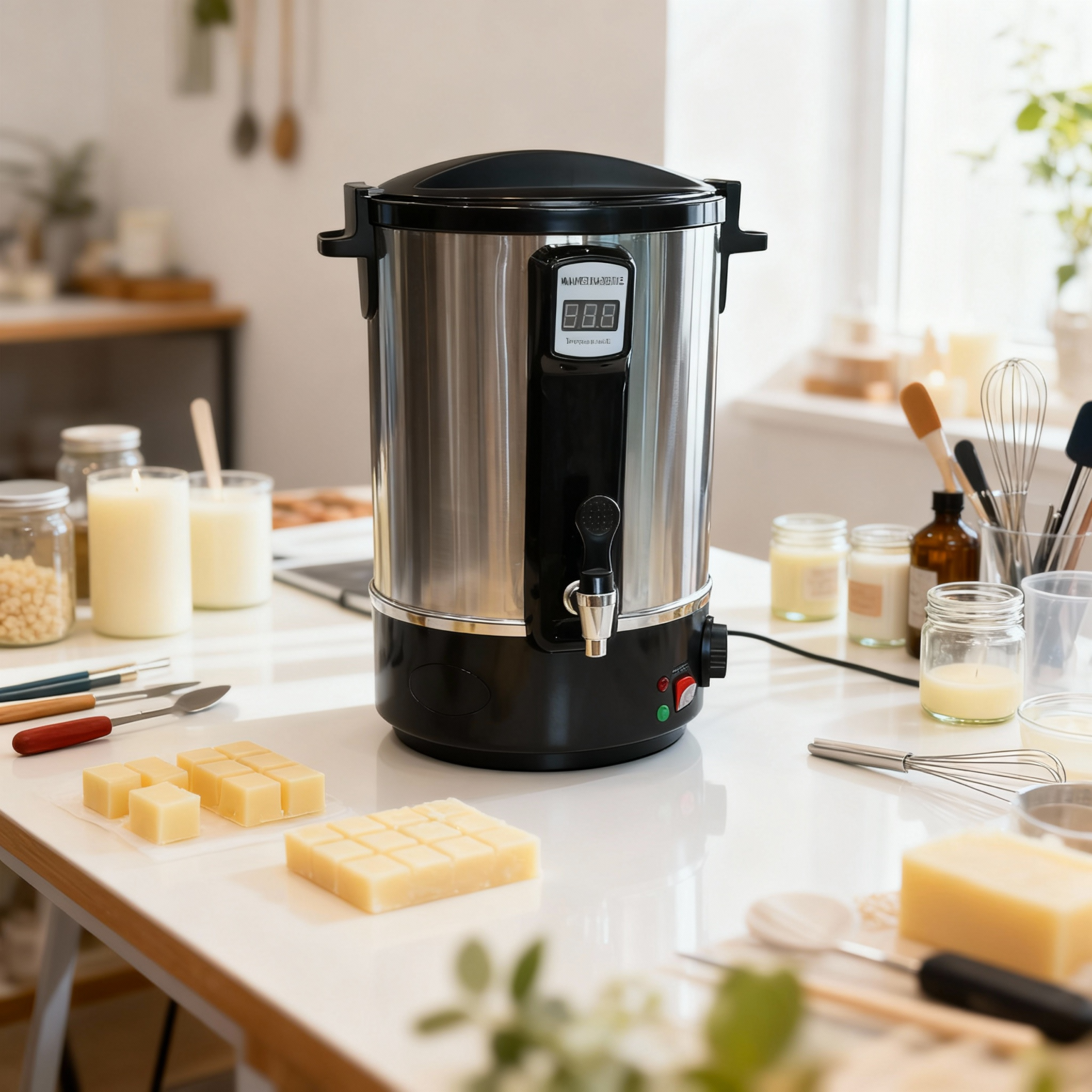 A high-capacity 12-liter stainless steel melting heater designed for fast and even heating. Features a digital temperature display, easy-pour tap, and durable. Perfect for candle making, soap production, and large-batch DIY projects. Reliable, efficient, and ideal for home or professional use.